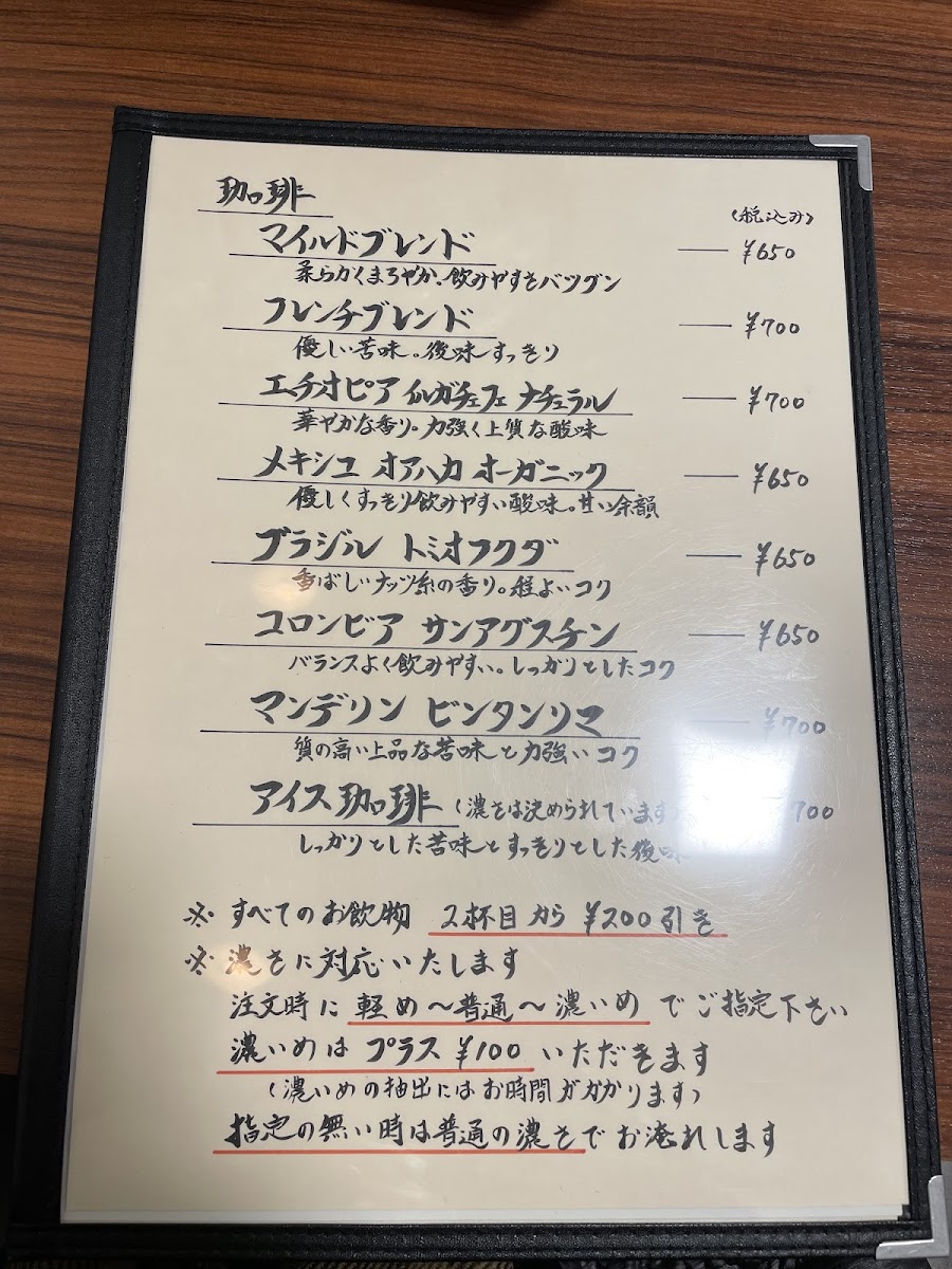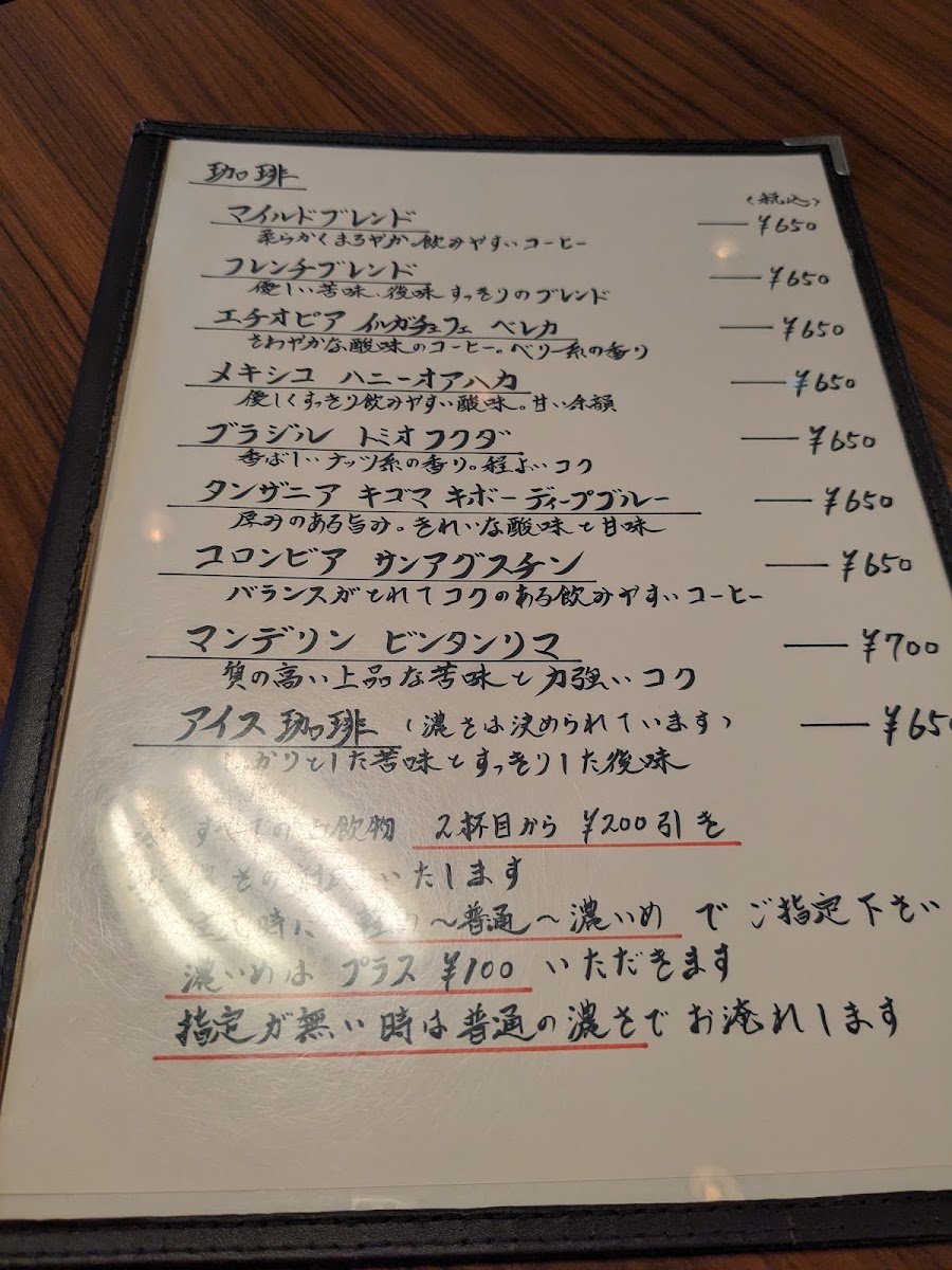 The menu boasts a variety of premium coffees to suit every palate, starting at just 700 yen. You can indulge in their signature マイルドブレンド (Mild Blend) or try the intriguingly rich エチオピア イルガフェ ベレカ (Ethiopia Yirgacheffe Bereka) for a sensory delight. Each cup is crafted with precision, featuring freshly ground beans that promise a coffee experience that is both aromatic and flavorful. Patrons rave about the マンデリン ビンタンリマ (Mandheling Bintang Lima), known for its robust body and balanced bitterness, perfect for serious coffee enthusiasts.